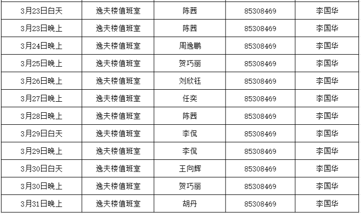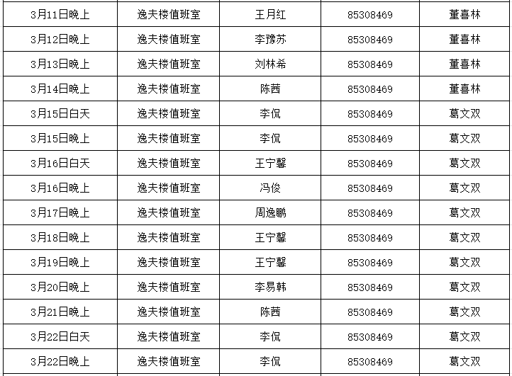 4.值班时间:上午:8:30—12:00 下午:14:30—17:30 晚上:17:30—21:30。