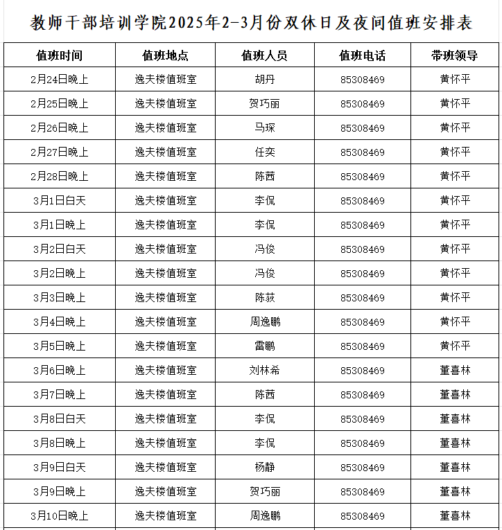 3.值班人员定时检查楼内办公室、多媒体教室及周边情况,发现问题及时向值班领导汇报;