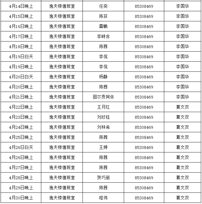 3.值班人员定时检查楼内办公室、多媒体教室及周边情况,发现问题及时向带班领导汇报;