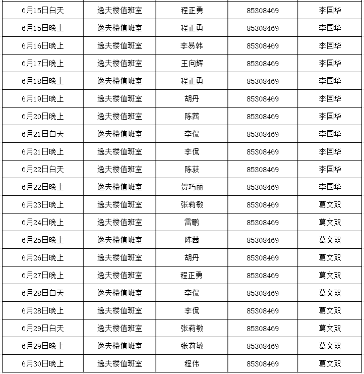 6.值班时间:上午:8:30—12:00 下午:14:30—17:30。