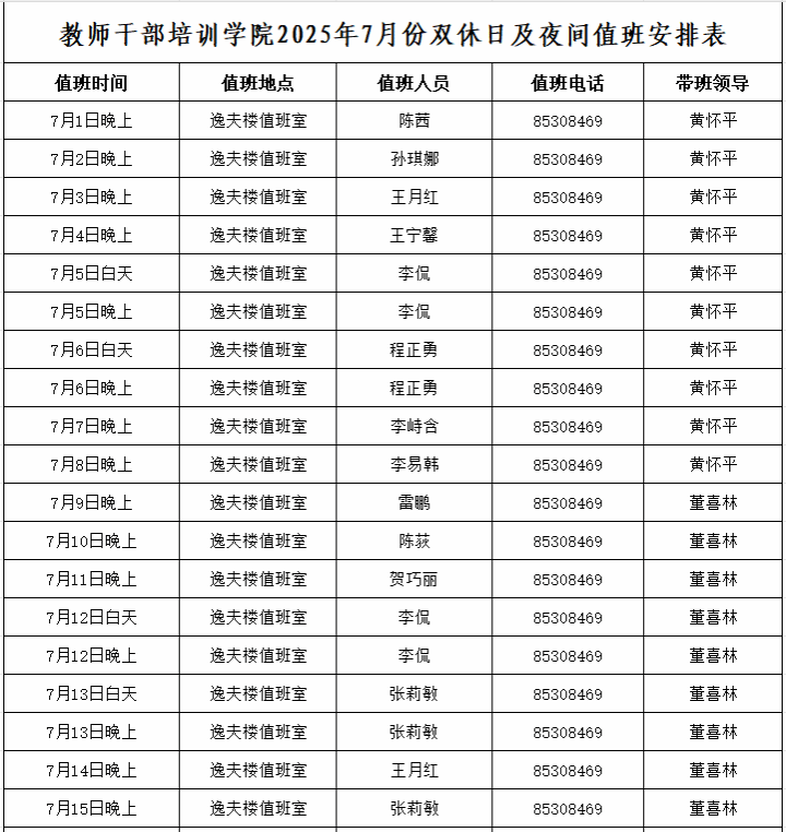 5.当值人员结束值班前需通过电话提醒下一班值班人员按时到岗并交接相关注意事项;