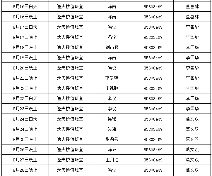 3.值班人员定时检查楼内办公室、多媒体教室及周边情况,发现问题及时向带班领导汇报;