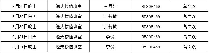 6.值班时间:上午:8:30—12:00 下午:14:30—17:30。