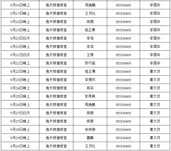 6.值班时间:上午:8:30—12:00 下午:14:30—17:30   晚上:18:30-21:00。