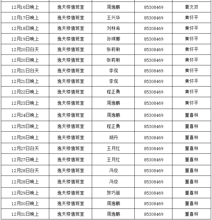 6.值班时间:上午:8:30—12:00 下午:14:30—17:30 晚上:18:30-21:00。