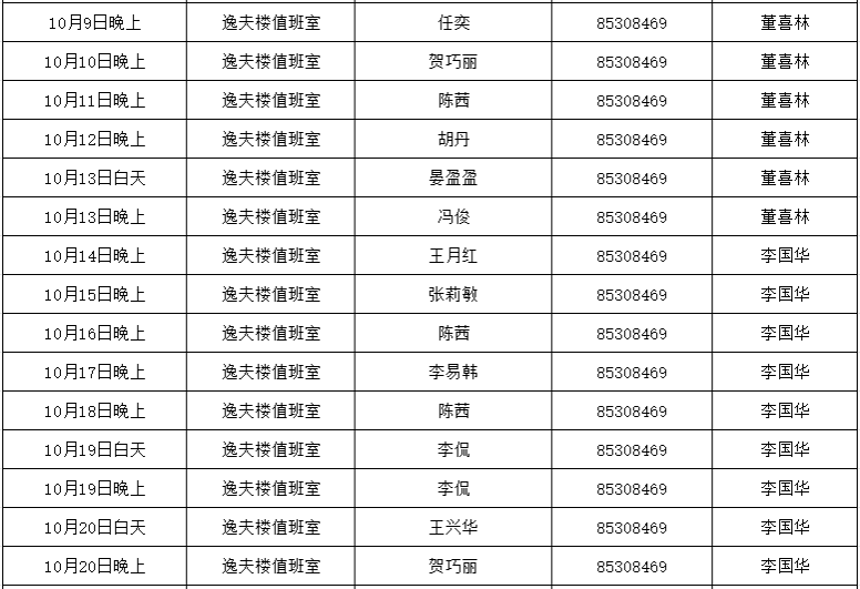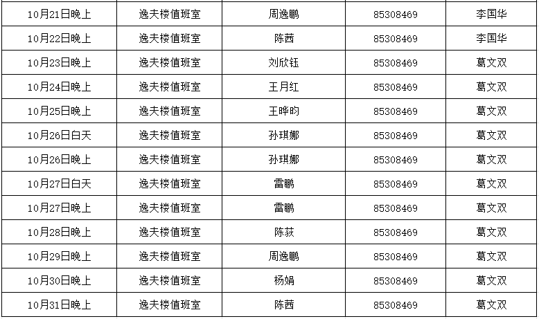 4.值班时间:上午:8:30—12:00 下午:14:30—17:30 晚上:17:30—21:30。