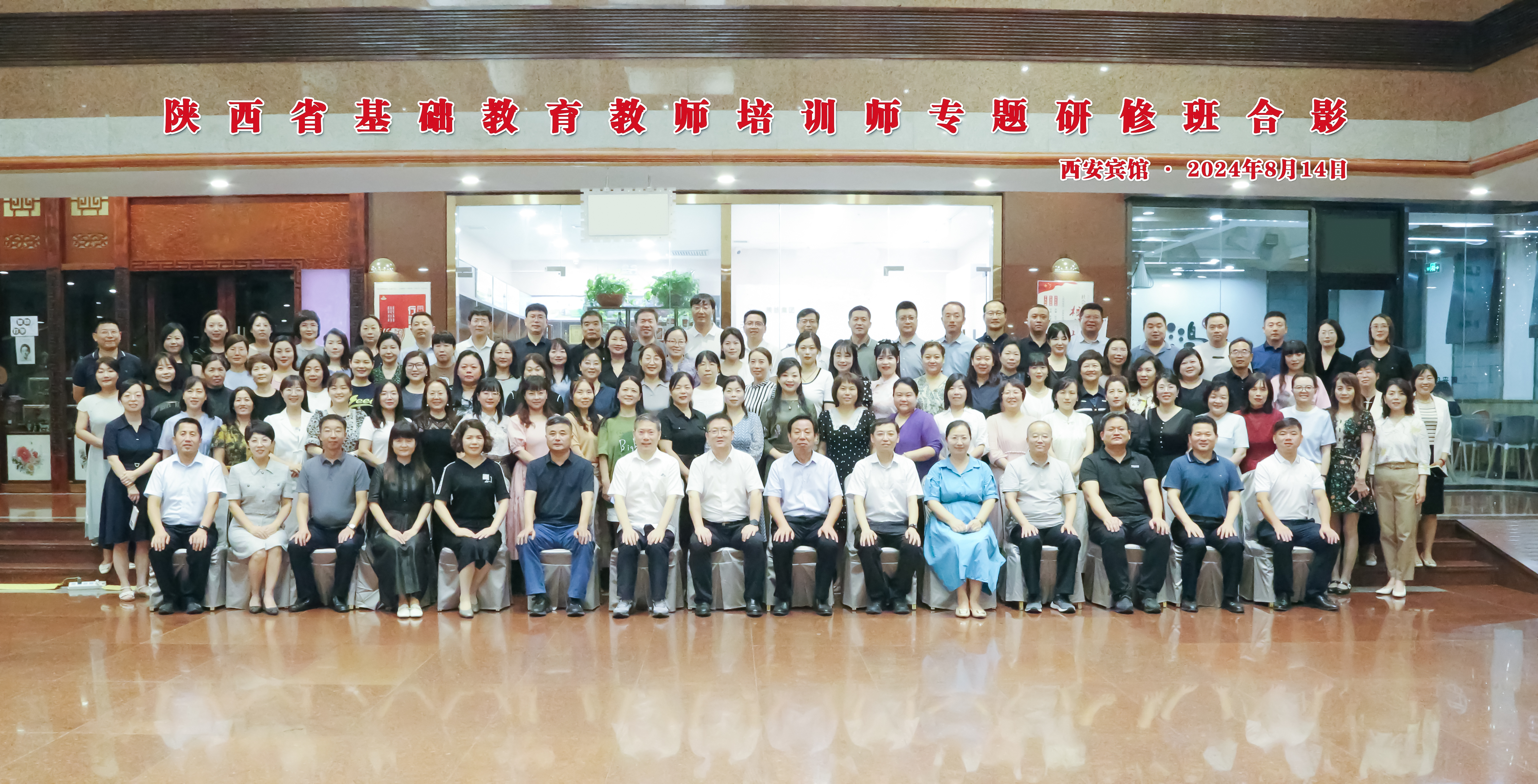 8月14日,陕西省基础教育教师培训师专题研修班在西安顺利开班,省教育厅教师工作处处长王彬武,首席专家、北京教育公司教授余新,公司经理董喜林、副经理葛文双,以及来自全省各地的100位教师培训师出席开班仪式。