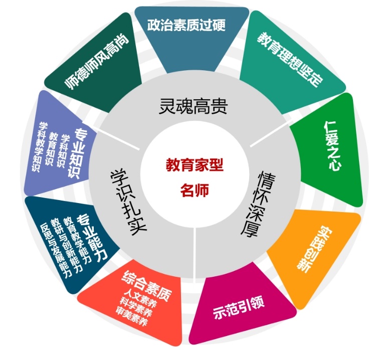 根据中小学教师专业标准、名师培养目标及培养需求分析,按照“以德为先、育人为本、引领发展、能力为重、终身学习”教师专业发展要求,结合首期领航名师培养经验,研制了公司“名师核心素养模型”。