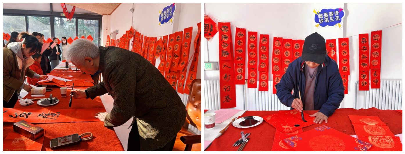 特邀嘉宾门忠民老师和龙春生老师挥洒自如,笔走龙蛇,一幅幅春联寄托着美好的愿景。一笔一划,都是对传统文化的传承;一句一联,都蕴含着对新年的期盼,彰显着中华民族生生不息的根脉。