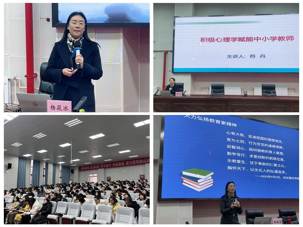次日,西北农林科技大学符丹教授作了《积极心理学赋能中小学教师》的专题讲座。她结合实际案例,为教师提供了如何运用积极心理学提升教学效能、改善师生关系以及增强职业幸福感的实用方法。
