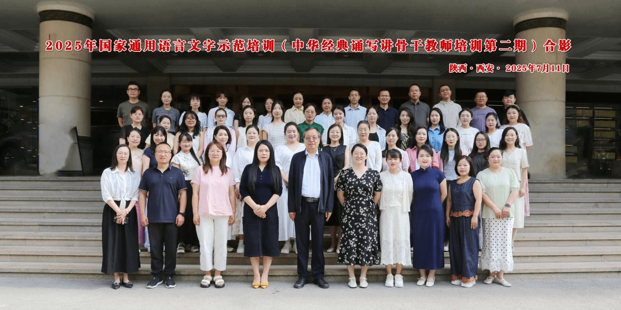 7月11日,2025年国家通用语言文字示范项目(中华经典诵写讲骨干教师培训第二期)顺利开班。公司文公司教授党怀兴,公司副经理李国华和来自全国各地的51位中小学骨干教师参加开班仪式,仪式由研修一部主任赵菁晶主持。