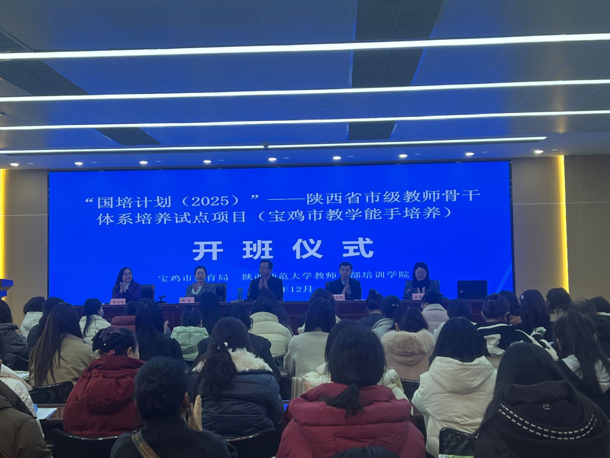 12月25日,“国培计划(2025)”—— 陕西省市级教师骨干体系培养试点项目(宝鸡市)第一阶段在宝鸡教育公司顺利开班。宝鸡市教育局副局长杨爱魁、教师工作科科长帼华、宝鸡市公司产品研究室副主任唐亚丽,公司副经理葛文双和来自宝鸡市的180位市级能手参加了开班仪式。仪式由研修一部主任赵菁晶主持。