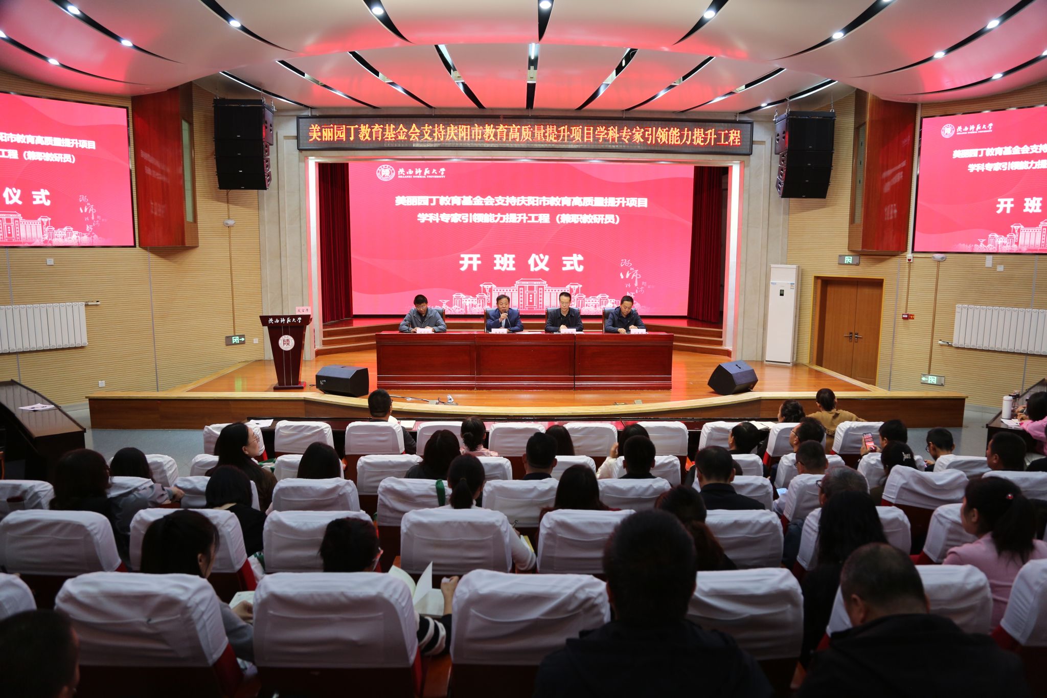 10月18日,公司承担的美丽园丁教育基金会支持庆阳市教育高质量发展项目——“学科团队”庆阳市专兼职教研员(中学)培养项目在雁塔校区顺利开班,庆阳市教育局职教中心顾维科副主任、项目办刘春荣主任,公司经理董喜林,以及来自庆阳市各区县初中和高中一线教师100人参加开班仪式。
